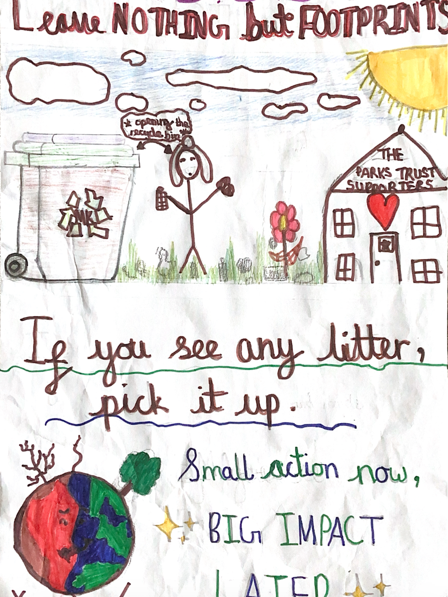 Sarah Griffiths, the Outdoor Learning and Interpretation Manager for The Parks Trust said “Thank you to all those who took part. It’s great to see so many children and schools getting involved. We were really impressed by the entries this year, and the amount of votes they received from the public. Litter left in the parks gets into our lakes and rivers and pollutes the land. It would be fantastic if these posters could encourage people to take litter home, so wildlife is protected.”