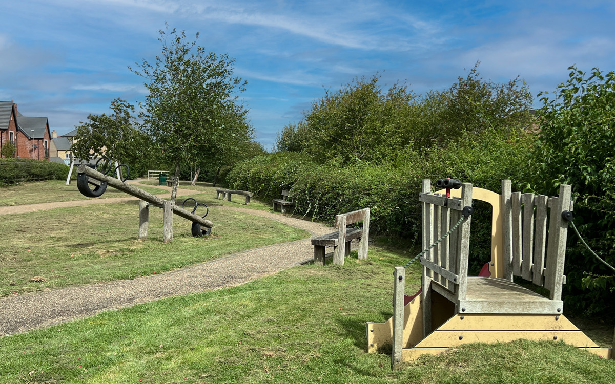 This play area is located in the estate of Kingsmead, not far from Kingsmead Spinney. What3Words location zoos.glove.recorders.