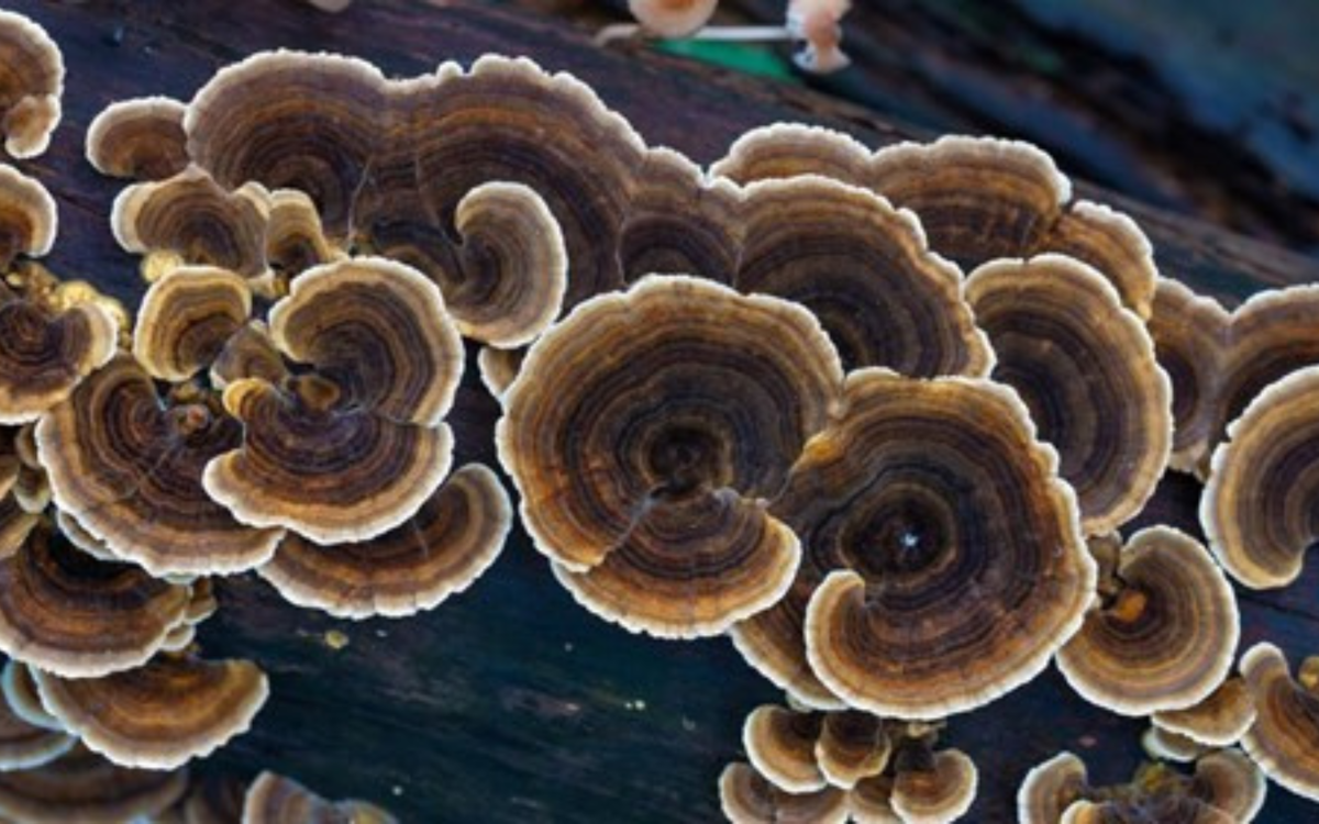You might be surprised how many foods are made using fungi. Fizzy drinks, wine, beer, cheese, bread, Marmite, Quorn, coffee and chocolate all depend on fungi. Fungal mycelium is also being used to create environmentally friendly leather, packaging, and even building materials! (image:Turkey Tail, Trametes Versicolor)