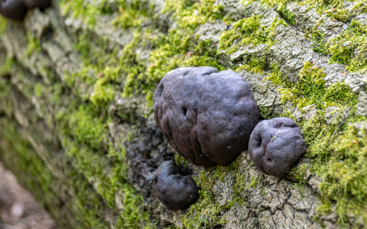 These look like black balls, and grow on ash trees, fallen branches and rotten deciduous woodland all year round. They are named after the legend of King Alfred who, when in hiding from the Vikings, was left to mind some cakes by the peasant that had taken him in. He burnt them, and they looked like small blackened balls, similar to the fungi.