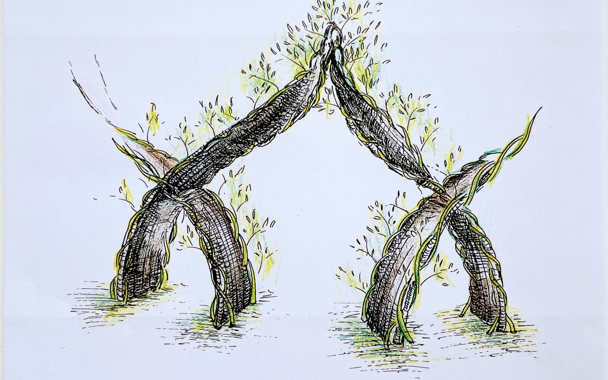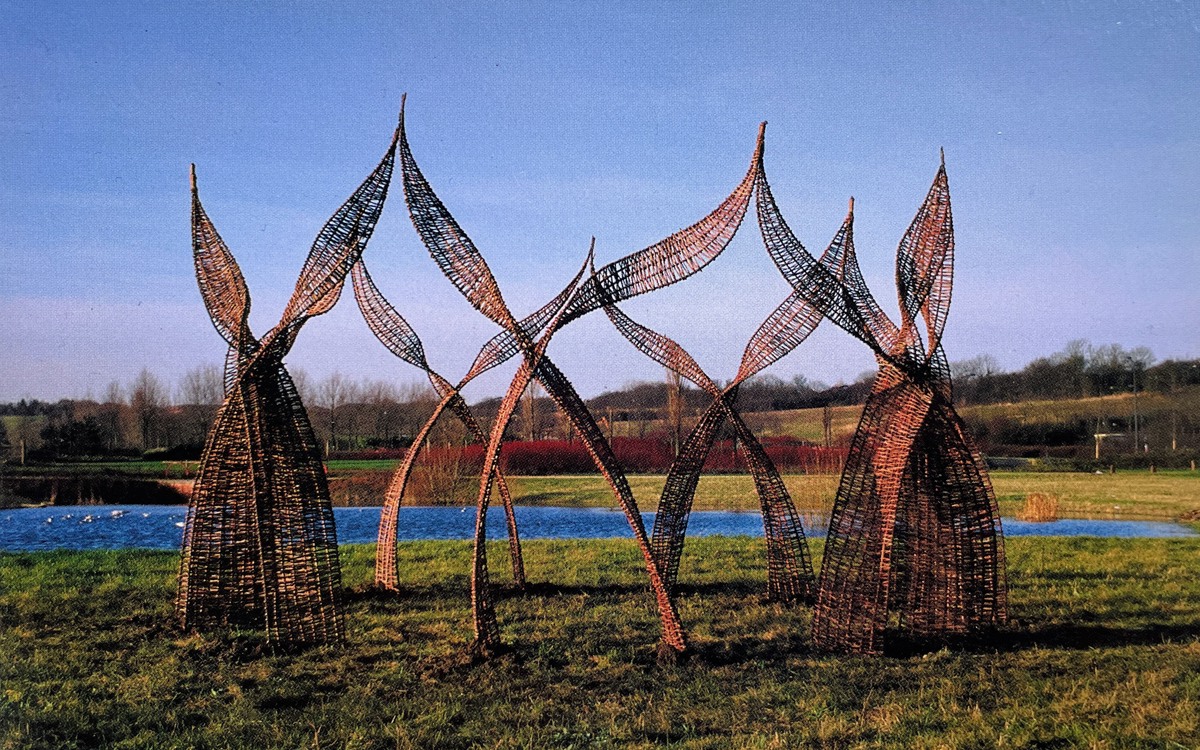 “The sculpture represents a group of figures holding hands, moving so fast that they seem almost to merge into one another. Very long fresh willow rods were planted around the base and woven into the form. These then took root and have continued to grow and sprout every year and grafting together in places. It is up to the owners of my sculptures how the forms evolve as they grow over the years, and I am incredibly grateful that the Milton Keynes Parks Trust has taken care of it so well for nearly 30 years. The realisation of the dance is still clear even after all this time.” Clare Wilks