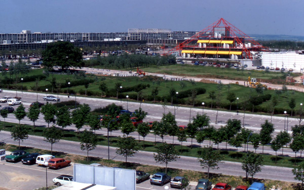 The Midsummer Oak tree was an ancient tree that stood on a patch of ground near The Point in Central Milton Keynes. It was hundreds of years old, and a known landmark to the early inhabitants of the emerging new town. You can see it in this photo from 1985, just to the left of The Point. © MKDC. Crown Copyright. Used under the Open Government Licence v3.0. Image courtesy of the City Discovery Centre